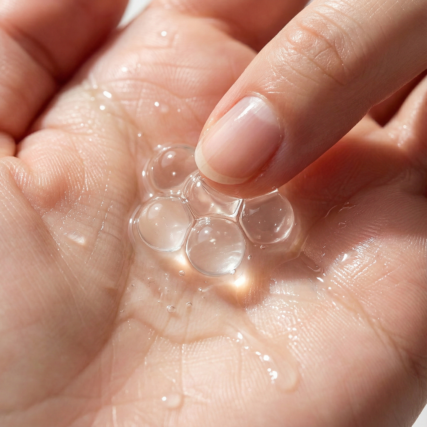Gib die Kugeln in deine Handfläche und drücke sie mit den Fingerspitzen zusammen. Spüre, wie sie platzen und ein frisches, hochwirksames Serum freisetzen.